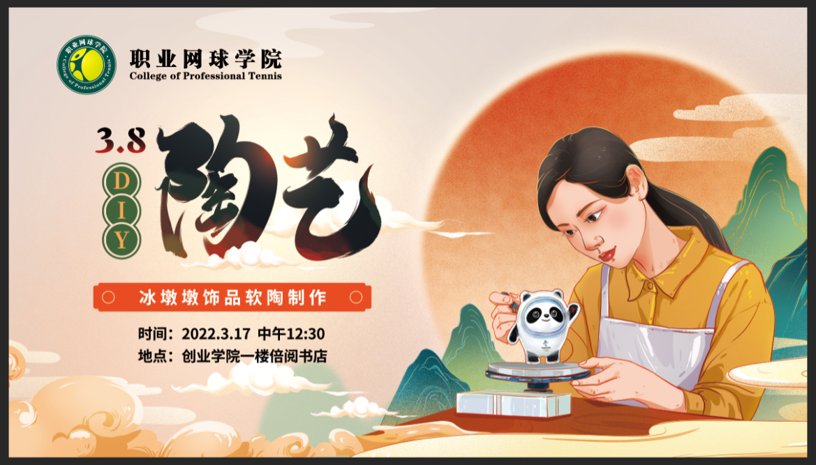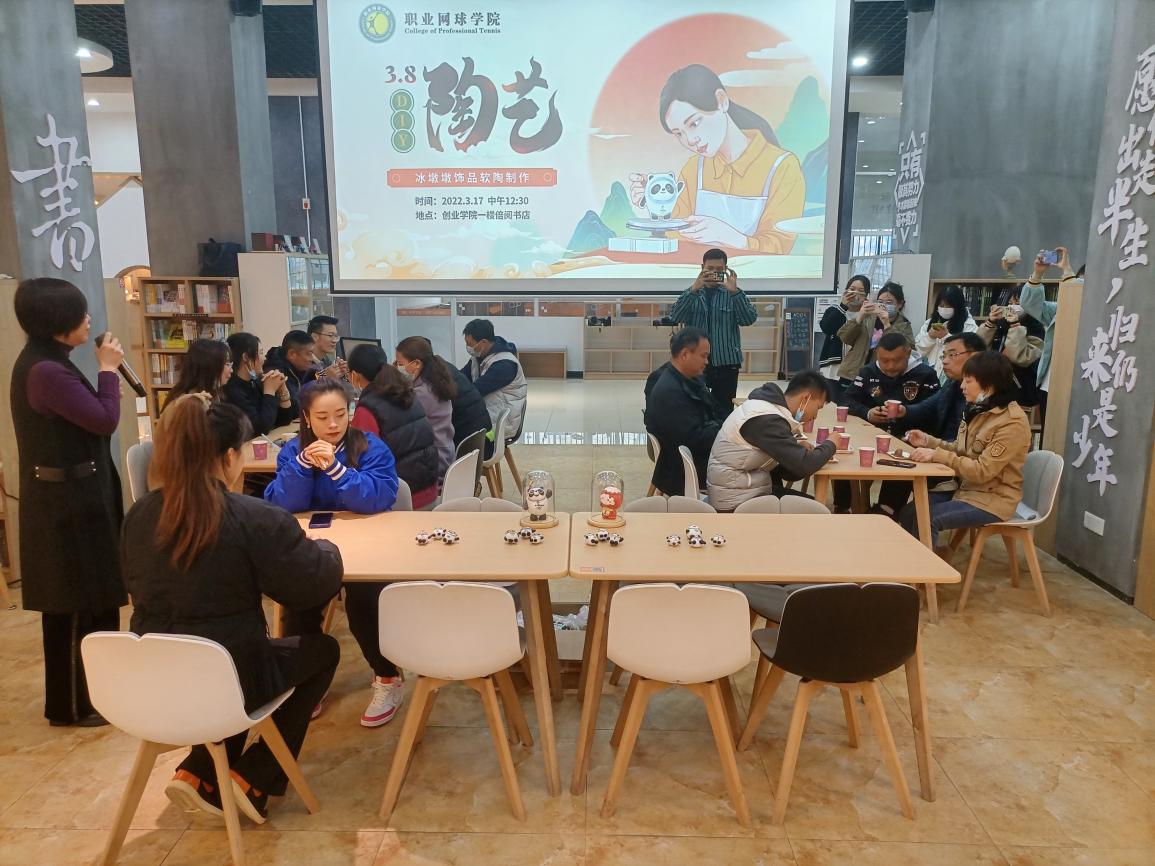2022年3月17日,职业网球学院全体教职工在创业学院一楼举办了庆3.8妇女节陶艺活动,此次活动由职业网球学院黄欣书记主持,职业网球学院全体老师参加,为辛勤工作的网院女神们奉上最真挚的节日祝福,文创学院专业学生为活动助力。