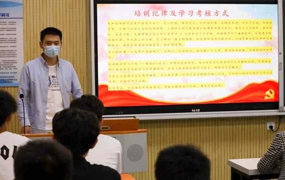 5月9日中午12:30,职业网球学院2022年入党积极分子培训班开班仪式在南校区教学楼顺利举行。体教2102班蒲浪主持本次开班仪式。