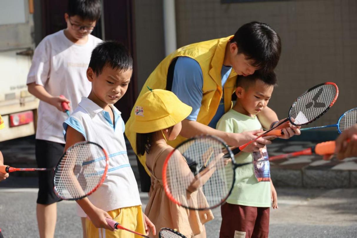午后阳光正好,挥拍、跳跃、奔跑,羽毛球运动让汗水浸湿了衣衫,笑声却洒满了整个小院。队员们充分将课堂所学运用在实际教学中,让孩子们体会运动之美,培养体育思维。