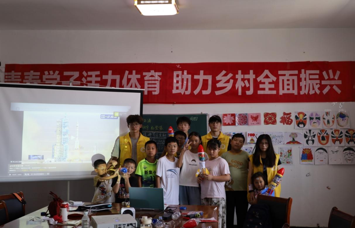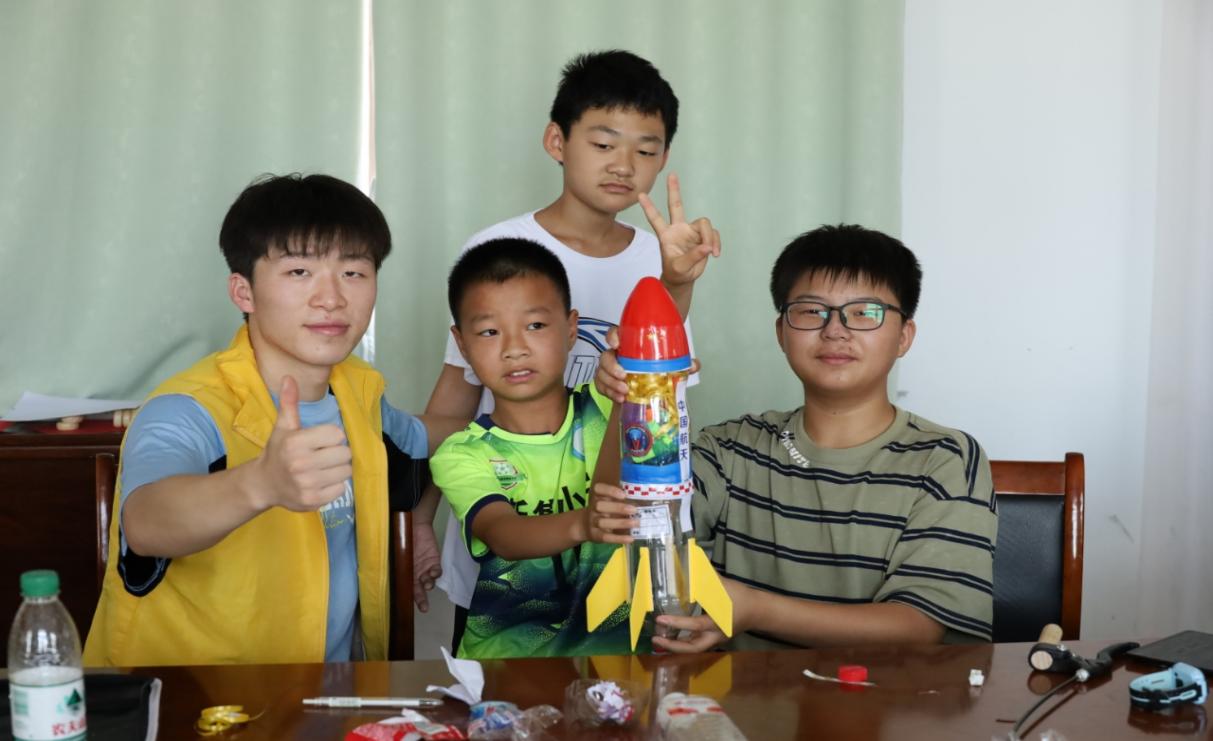 此次实践活动以日常废弃塑料瓶和废纸盒材料制成,腾空而起的水火箭,成为了一束启迪之光,照亮乡村孩子们探索未知的双眸,加强了对环保理念的了解,点燃他们对于科学世界的浓厚兴趣与无限想象。这种融合了动手能力、环保理念、科学思维与体育精神的实践教育,是助力乡村教育多元发展、滋养健康乡村建设沃土的有益尝试。最终,这一切努力都指向一个更为深远的目标:为乡村全面振兴贡献青春之火为挑起新时代青年的责任 与担当而不懈奋斗。