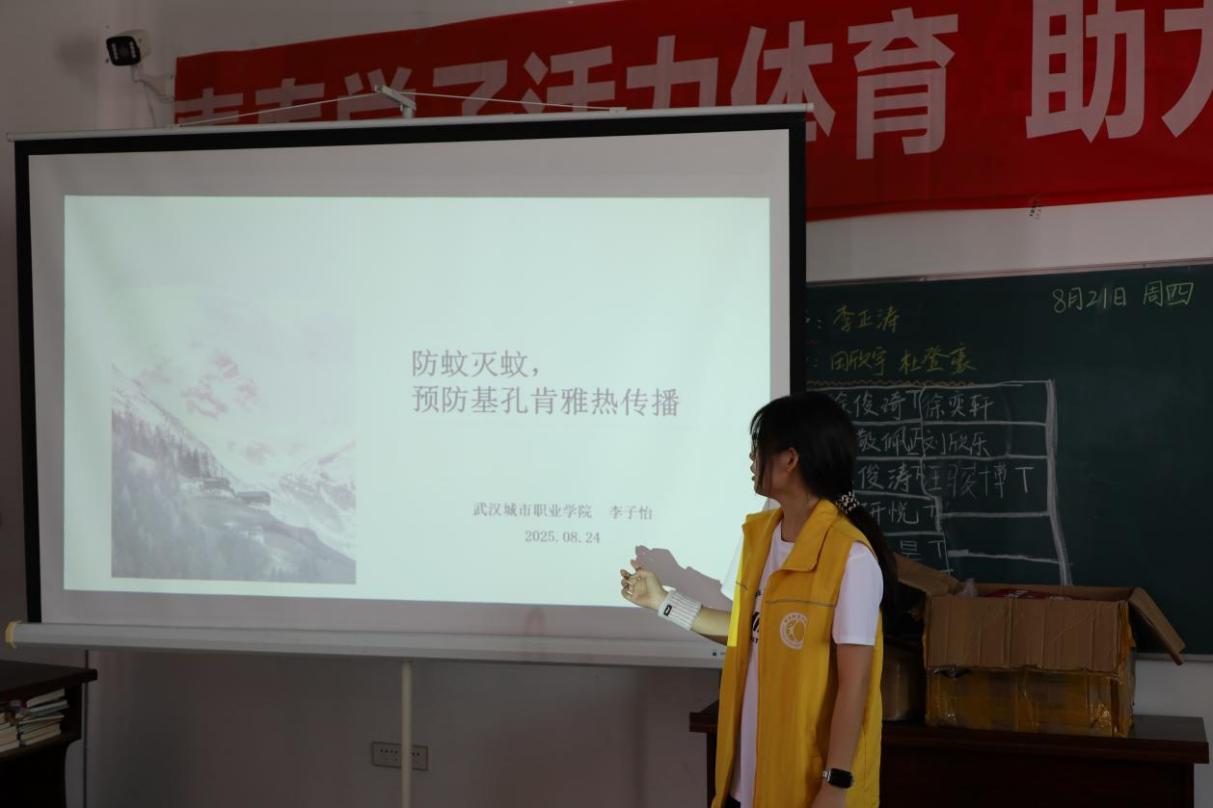 在全面推进乡村振兴战略的时代背景下,提升乡村公共卫生水平与居民健康素养是关键一环。结合今年蚊媒传染病“登革热”“基孔肯雅热”问题,职业网球学院“薪传跃动”志愿服务队迅速响应,于8月25日深入乡村,开展“预防‘两热’防蚊”科普讲座与科学健身指导活动,以实际行动助力乡村健康事业发展,践行社会责任与担当。